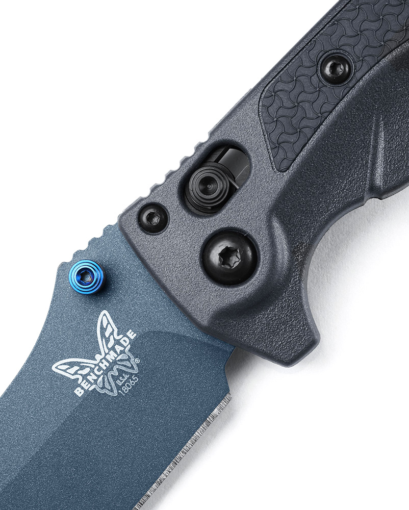Vår hårdare, vattentåliga EDC kniv känd som ”fiskarens favoritkniv” har precis fått en uppfräschning. Möt 18065BT-01 Mini Adira®, en smidigare variant av originalet, byggd för uppgifter på däck och utanför. Med ett nedtonat tempestsilvergrått Grivory®-handtag i kombination med detaljer av safirblå PVD. Mini Adira® har ett kvickt 99 mm drop-point-blad gjort av CPM-MagnaCut rostfritt stål, nu med en uppdaterad Cerakote® blå titaniumfinish. Den kolgrå paracord-remmen med svart nylonpärla ger en möjlighet till snabbare dragning ur fickan. Byggd med samma korrosionsbeständiga AXIS®-lås mekanism med rostfria fjädrar som originalet, kan nya Mini Adira® vara det snyggaste verktyget på båten.
