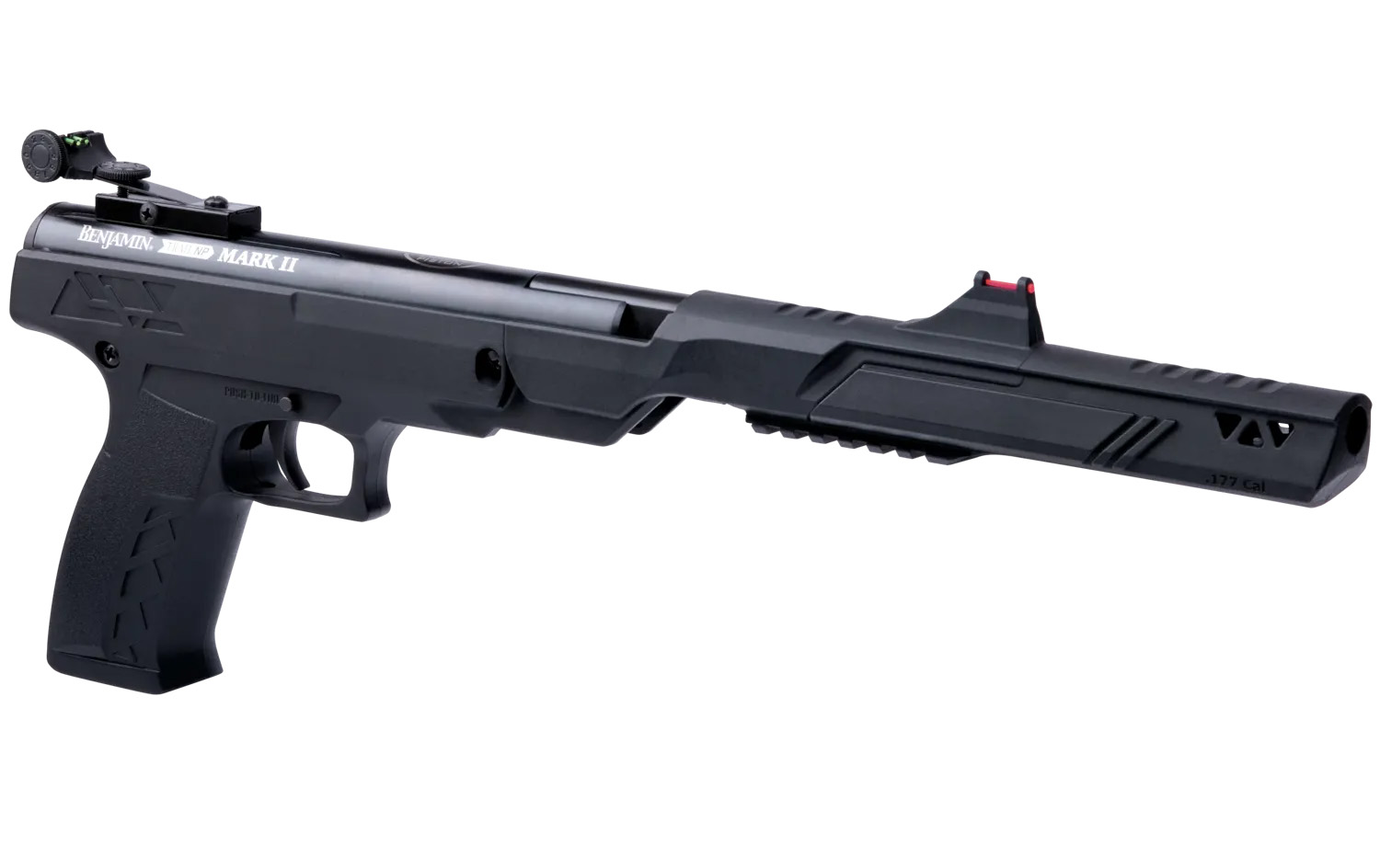 Benjamin Trail Mark II luftpistol har den patenterade Nitro Piston-tekniken som ger verklig fart åt dina kulor! Trail Mark II är idealisk för prickskytte. Den har ett väderbeständigt syntet grepp, fiberoptiska riktmedel för att träffa i mindre idealiska ljusförhållanden och en Dovetail skena. Alla dessa funktioner skapar en luftpistol som är användarvänlig, pålitlig och kraftfull.