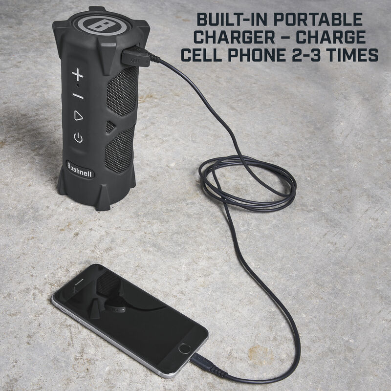 Being in the great outdoors usually means leaving sensitive electronics behind, but not when you have the Bushnell Outdoorsman Bluetooth Speaker! It’s drop-proof, rain-proof, wireless, and can even charge your cell phone and other smart devices.