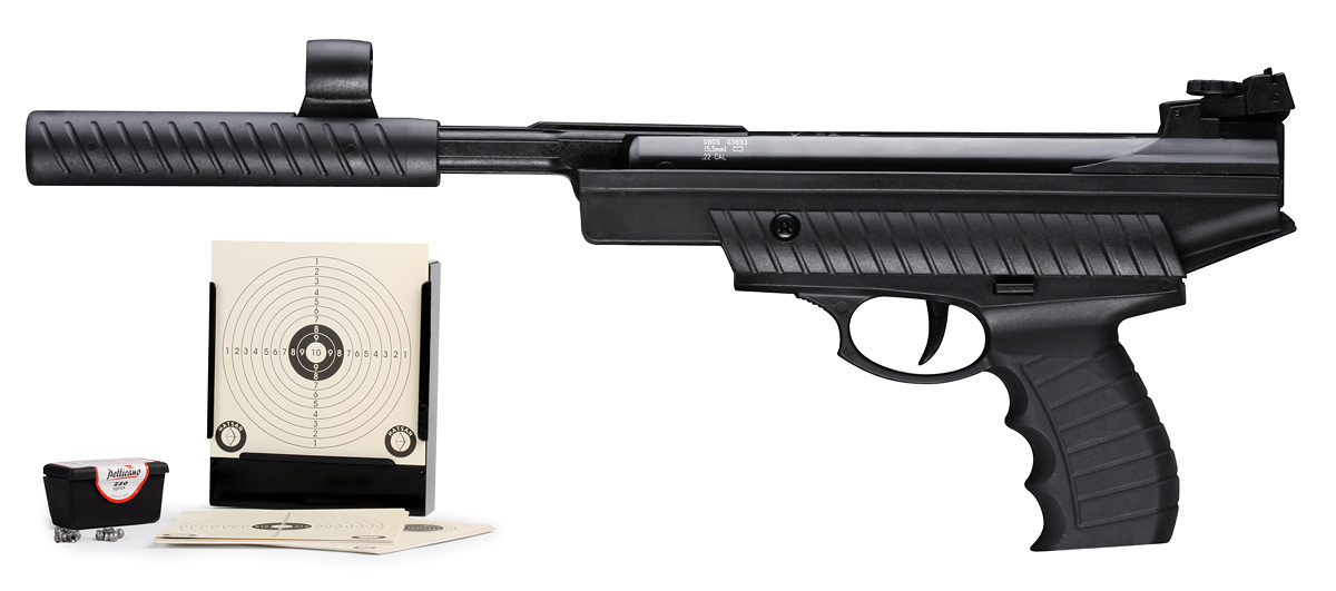 Hatsan 25 kit har allt man behöver för att börja skjuta luftpistol. Komplett med ammunition, kulfång och tavlor. Pistolen är robust konstruerad och enkel att använda.
