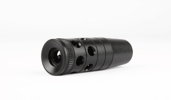 ”Kompensator för montering på luftvapen med 1/2″” UNF gängad pipa. Passar perfekt istället för varianten som sitter original på AT44. Kompensatorn leder ut luften på sidorna och minskar luftens påverkan på kulan när den lämnar mynningen.”